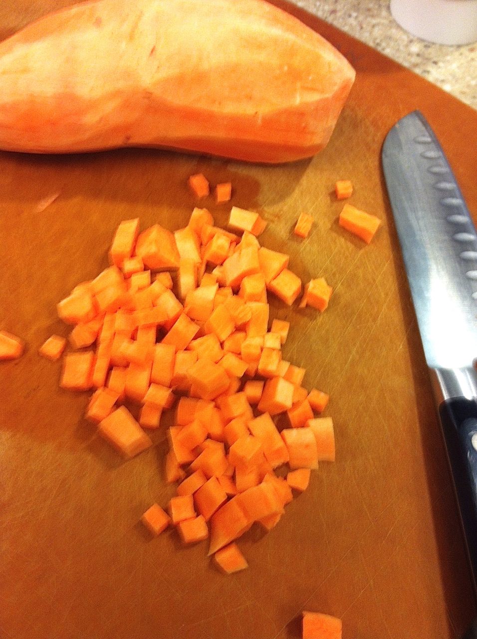 EACH Zucchini, Yellow Squash, Sweet Potato, chopped