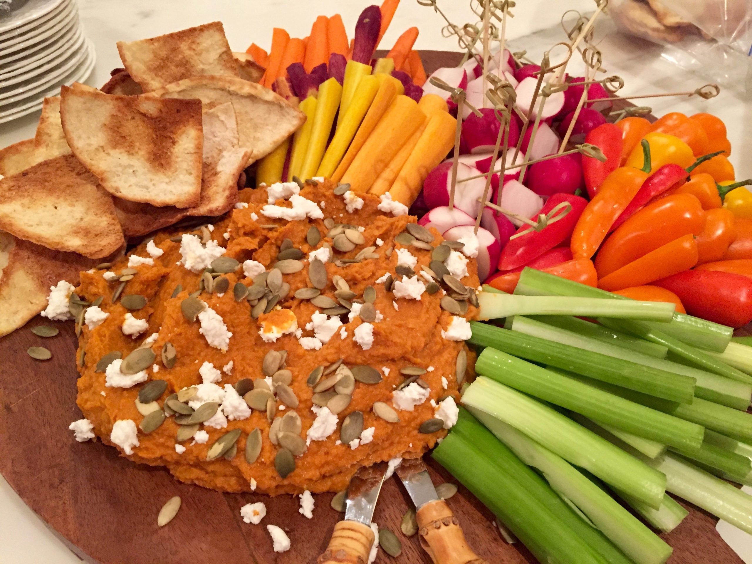Pumpkin Hummus with Goat Cheese and Pumpkin Seeds