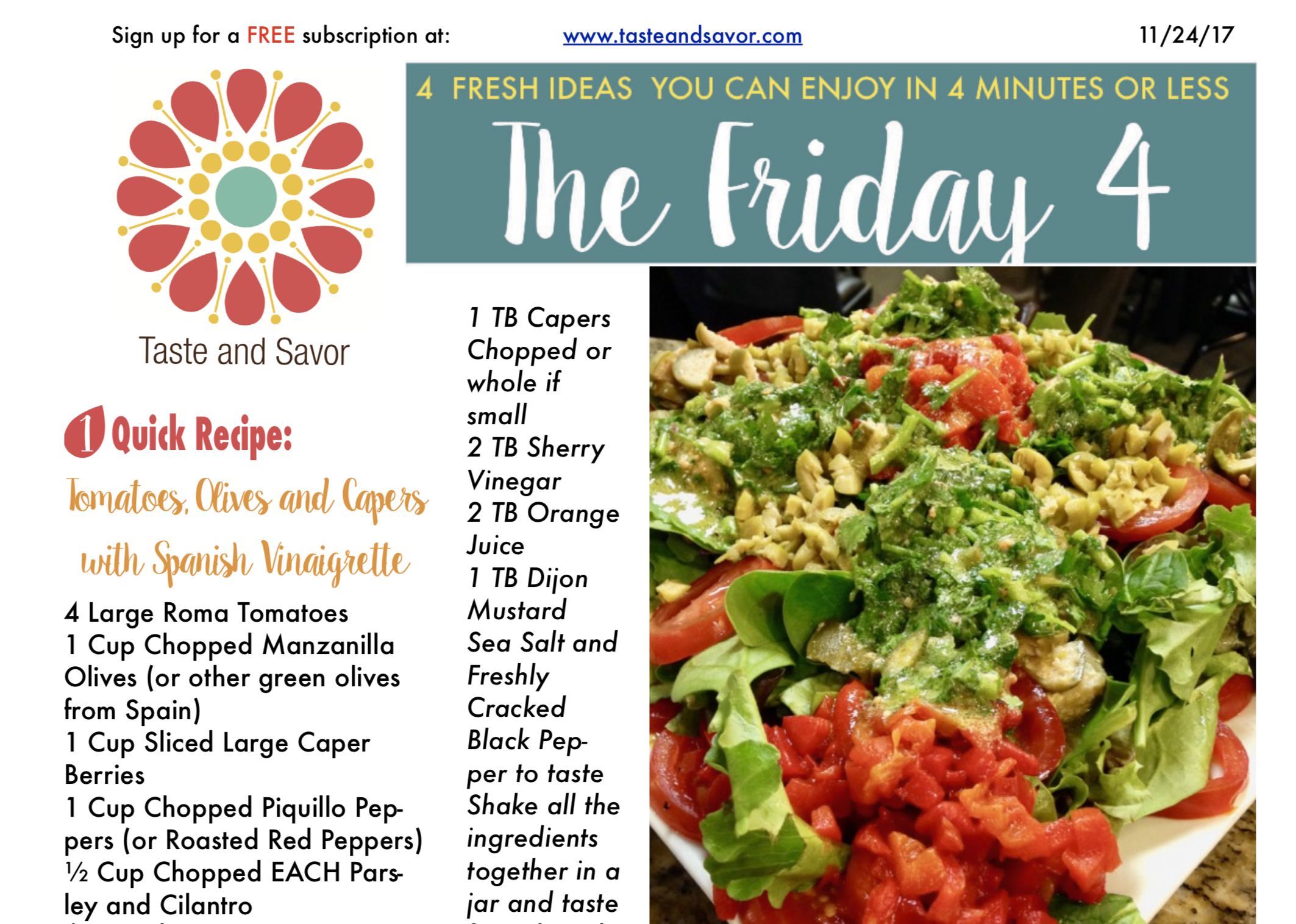 Friday Four 112417: Tomatoes, Olives & Capers with Spanish Vinaigrette