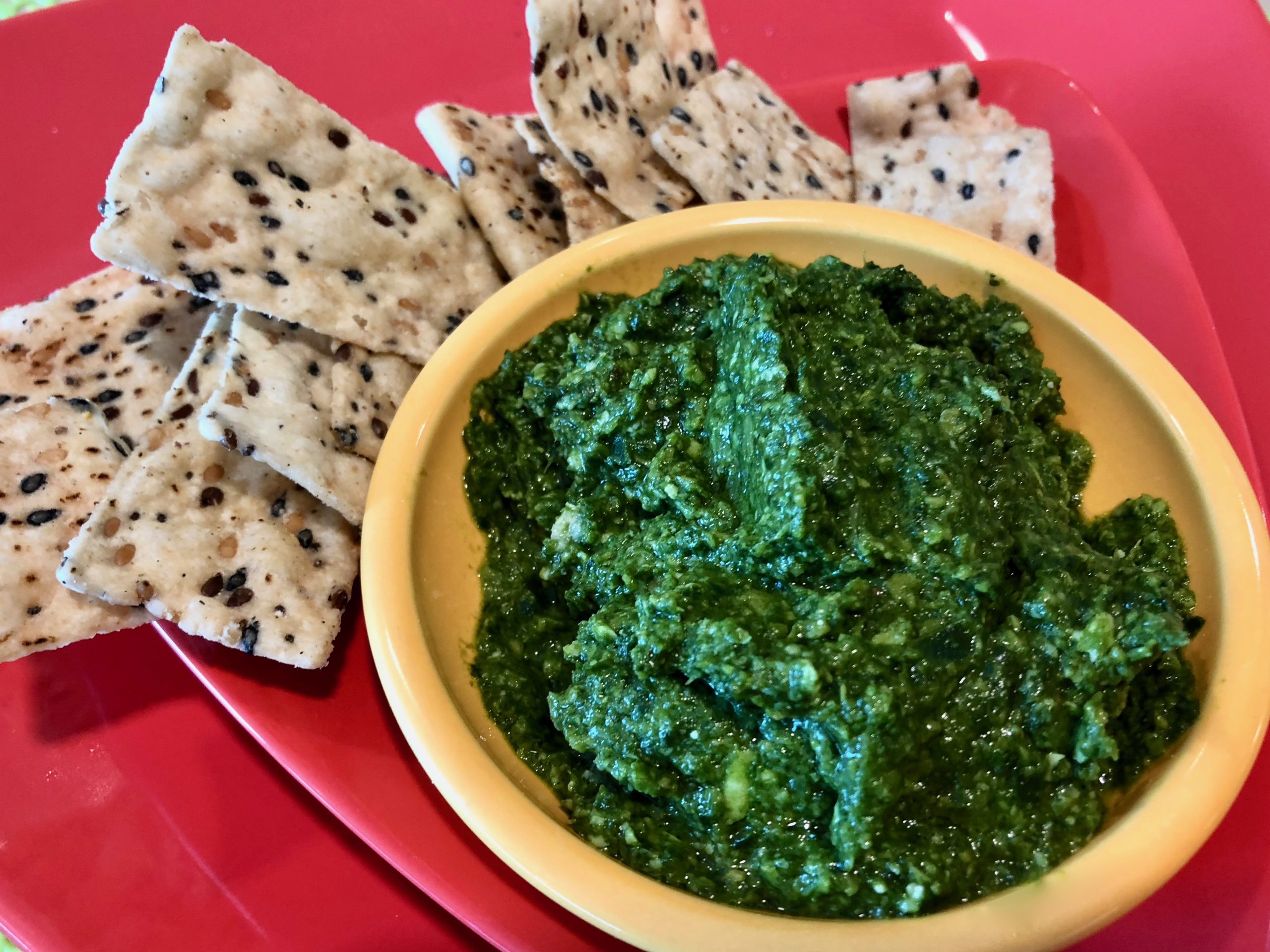 Who says basil has to be the only leafy ingredient in pesto? Not us! Recently we presented a class on “Eating for Energy” and highlighted the leafy greens that packed the most powerful punch. This green that is sometimes hard to love because of its strong flavor can easily blend into a craveable pesto that not only tastes good, but is good-for-you, too.