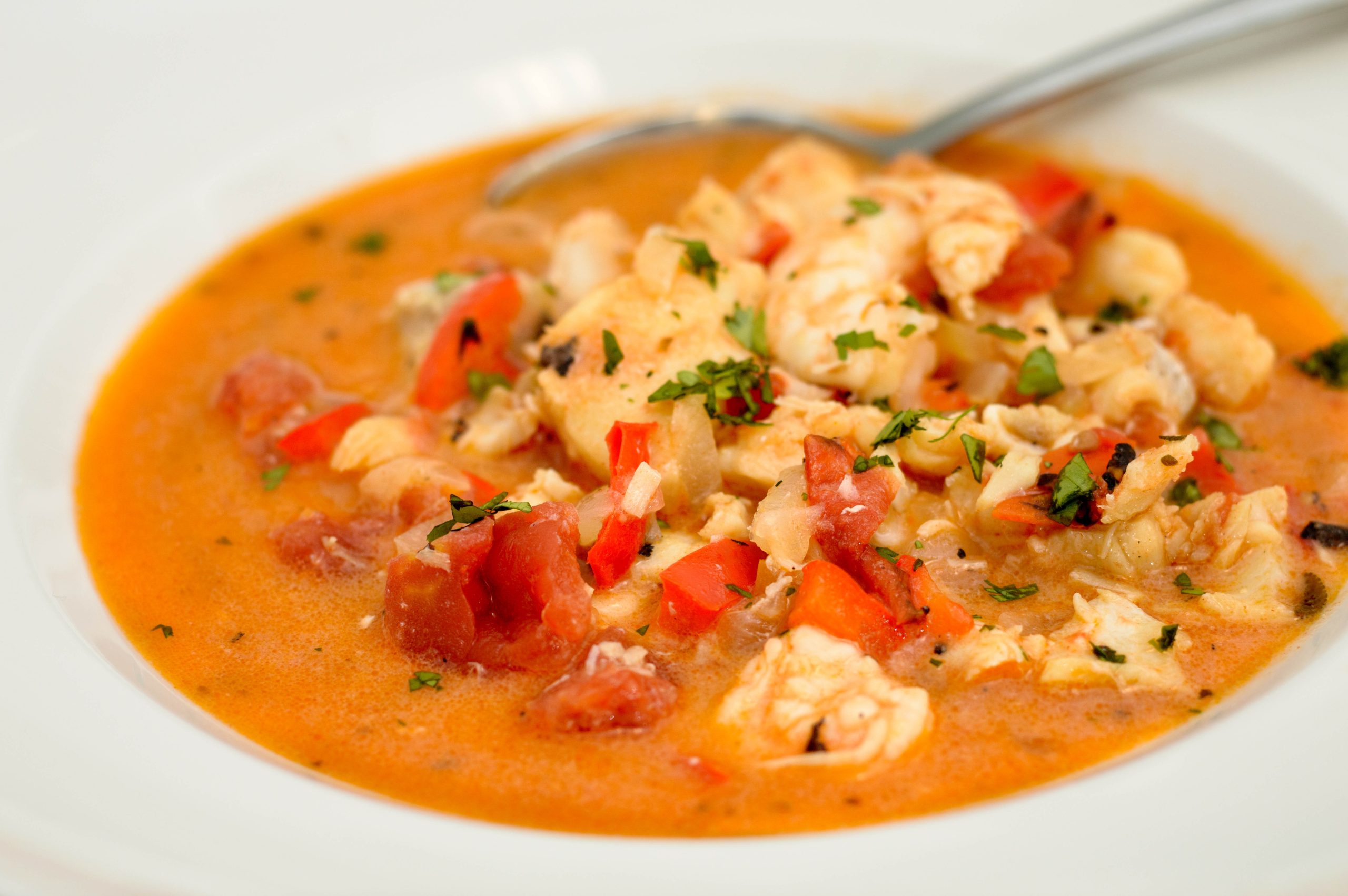 Add the tomatoes to the soup, and simmer until warm. Stir in the fish and cook for 5 minutes – then add the shrimp and simmer until the shrimp is just cooked through. Add the lemon juice, Taste for salt and pepper. Serve garnished with cilantro.