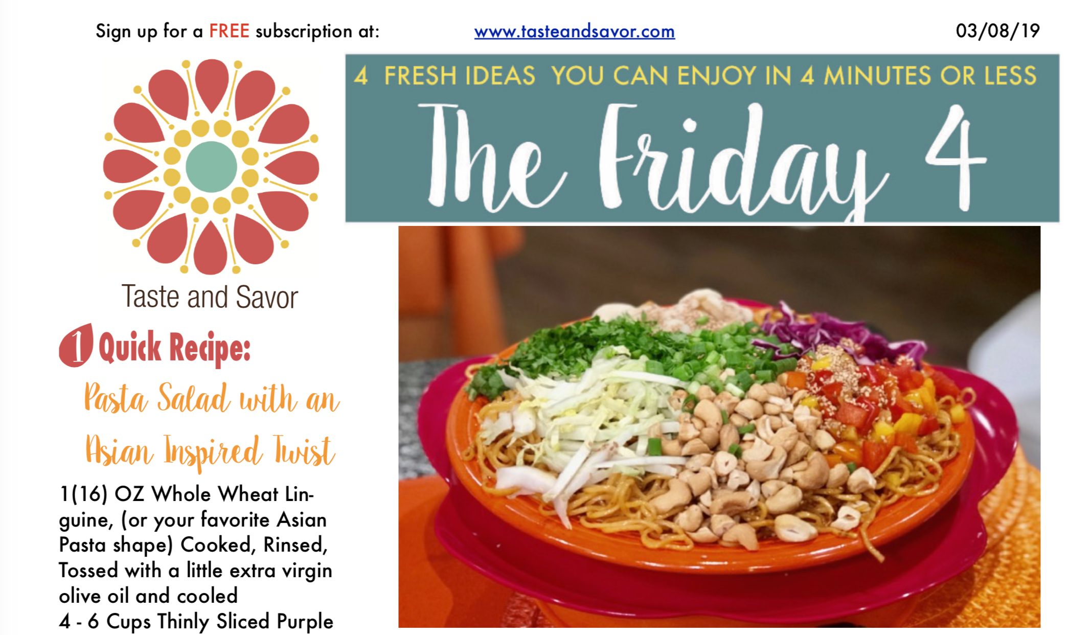 Friday Four – Pasta Salad with an Asian Inspired Twist – 030819