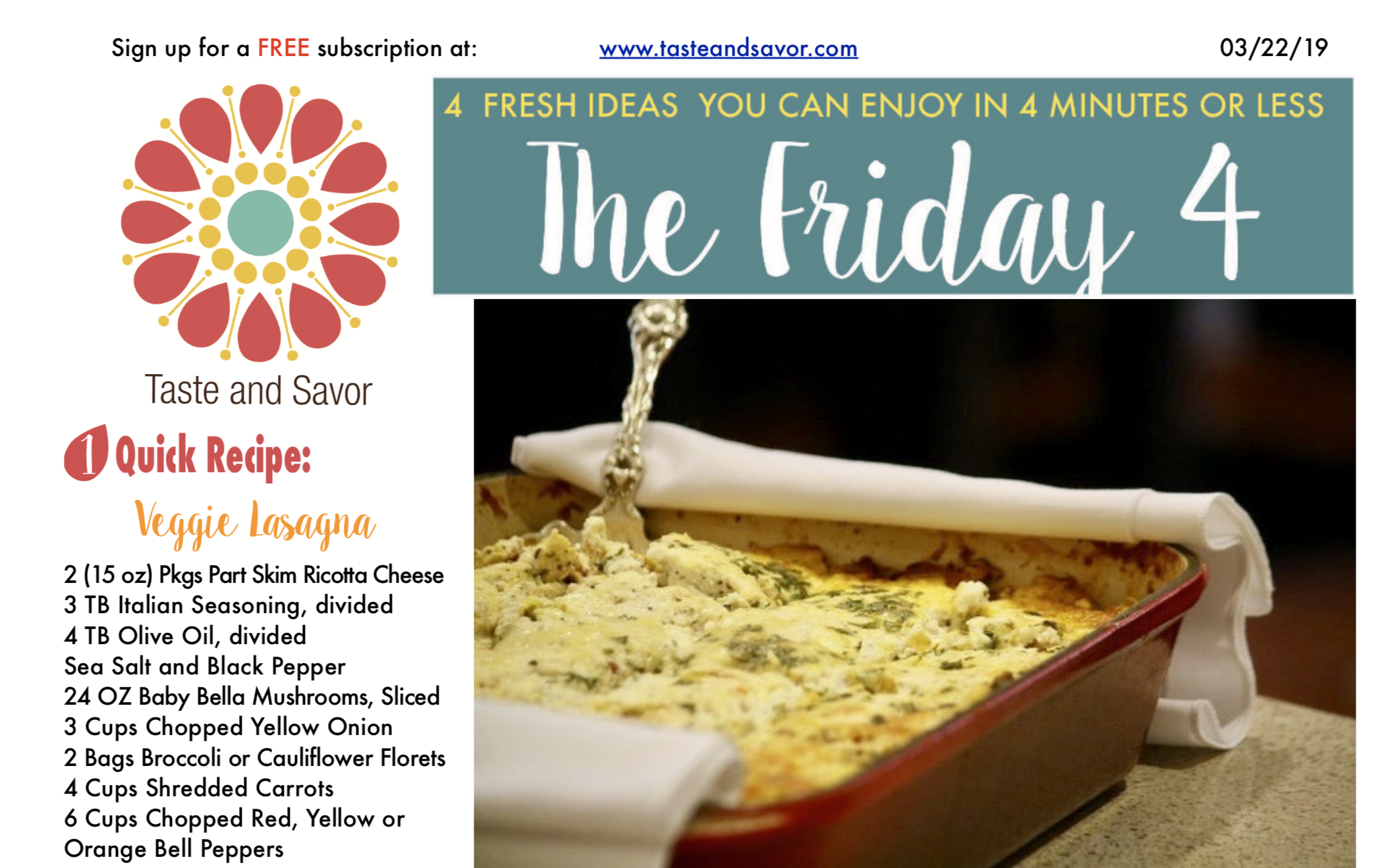 Friday Four 032219: Easy, Yummy Veggie Lasagne