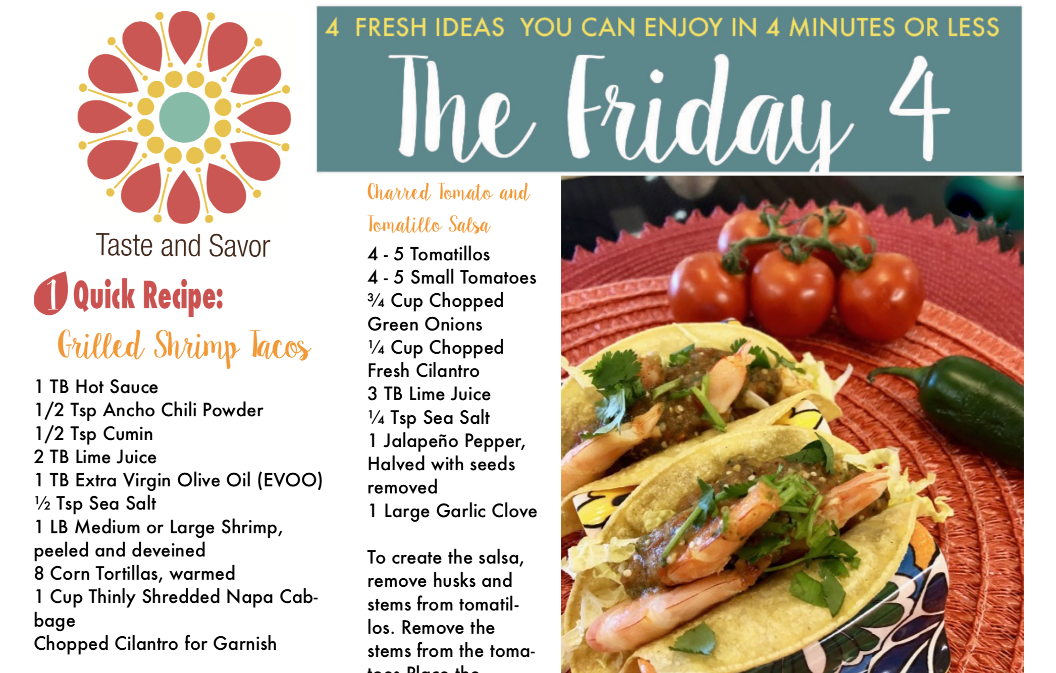 Grill the shrimp on a clean well oiled grill or grill pan. When cooked, place in a warm corn tortilla with the Napa cabbage and top with the salsa, garnish with chopped cilantro.