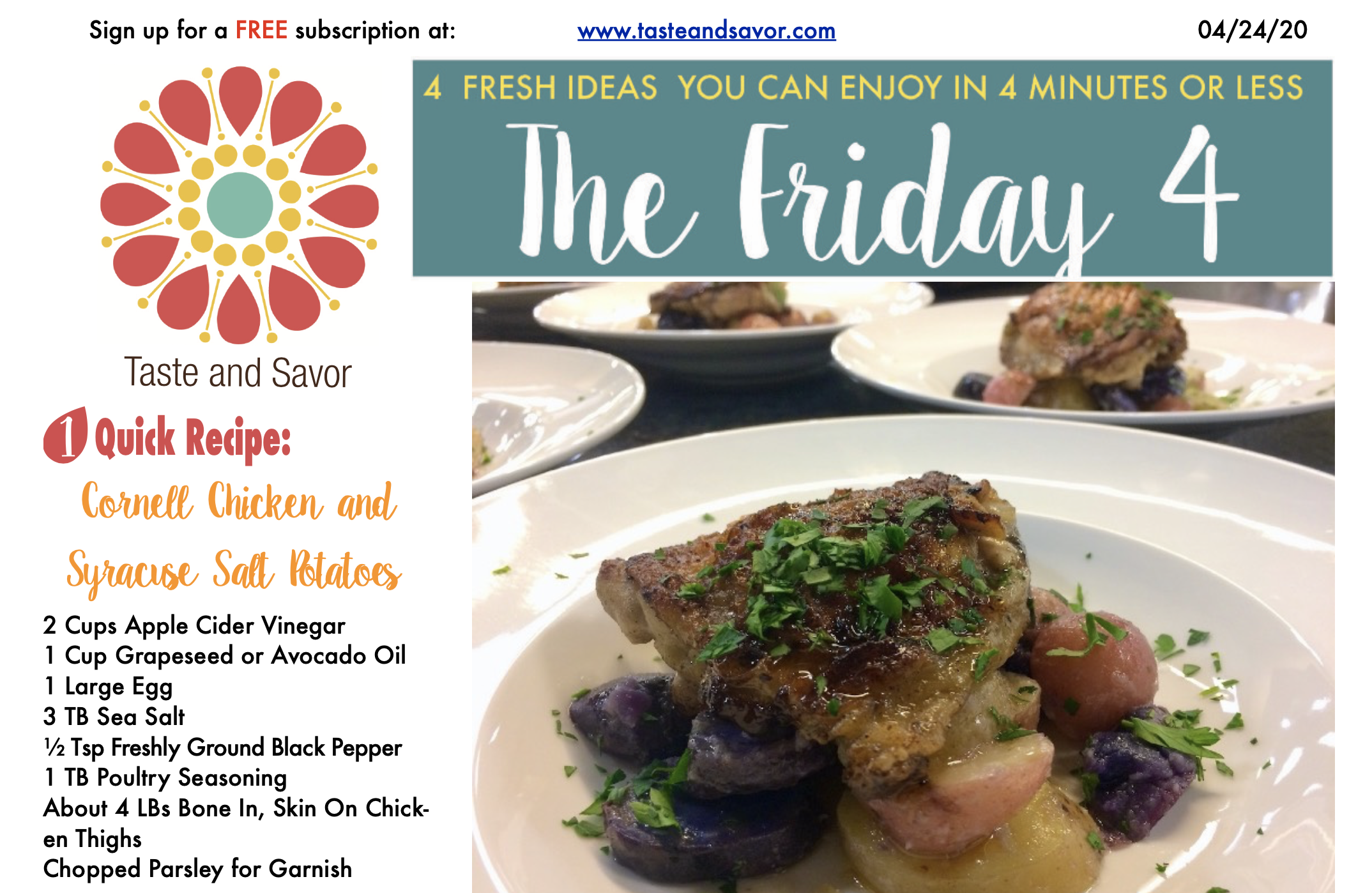 Finger Lakes New York is known the world over as North America’s premier cool climate wine growing region, and their delicious fresh vibrant Rieslings reflect it. This wine from Wagner Vineyards is no exception, its aromas of crisp refreshing stone fruit and flavors of citrus and minerals with a light clean finish make it an excellent choice to pair with lots of different cuisines including this week’s grilled chicken and potatoes.