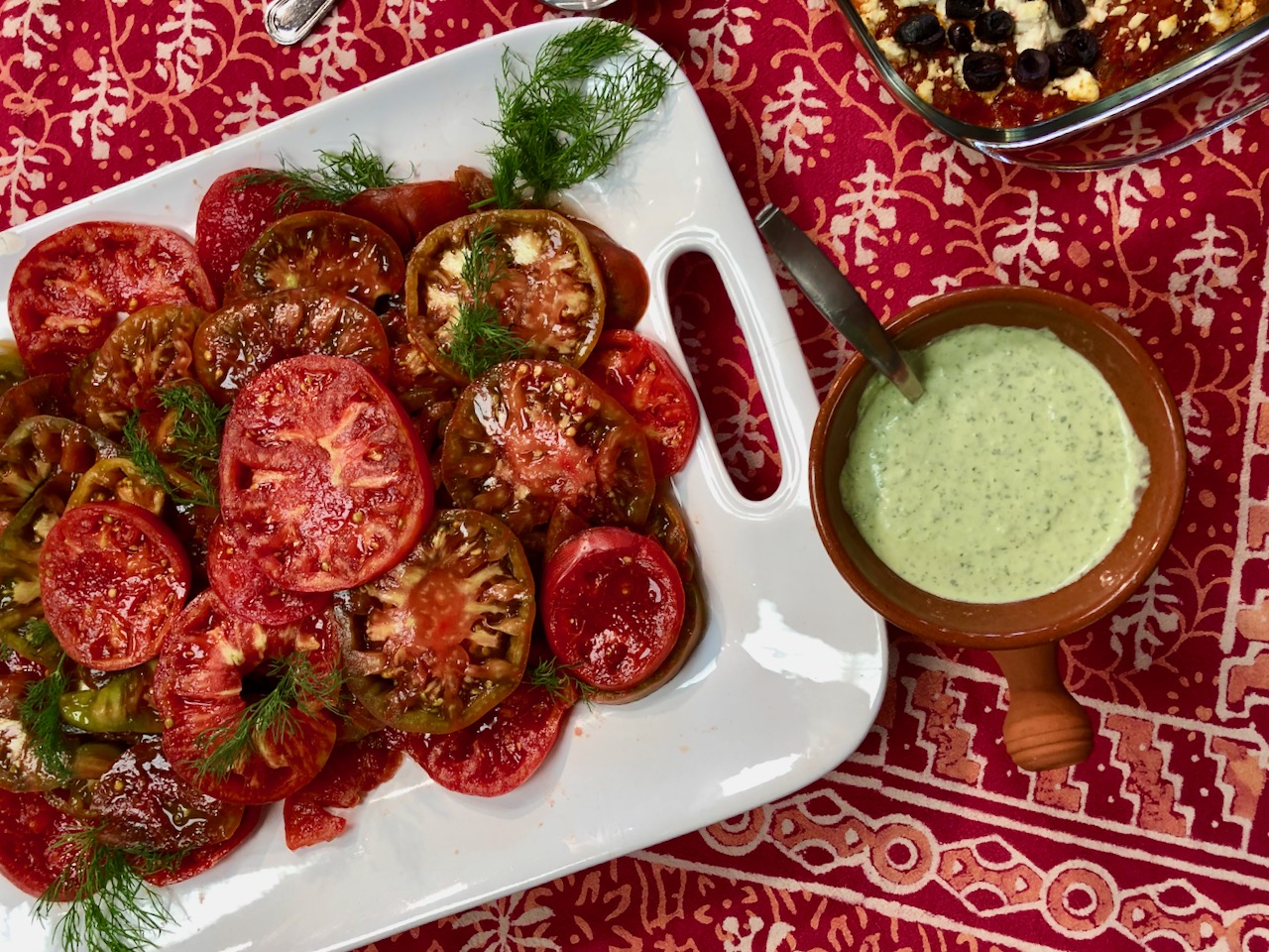 We’ve been seeing SO many beautiful tomato photos on social media lately. So, this week we can’t resist passing on an easy recipe for one of tomato’s favorite partners, Green Goddess Dressing.