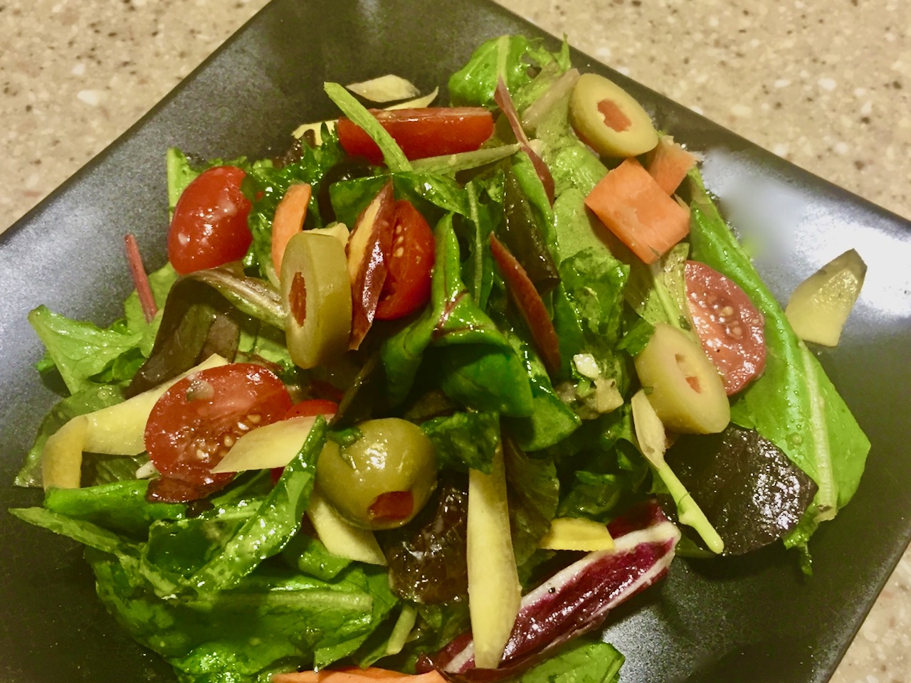 In the picture above we used it with a salad of power greens, crunchy carrots and sweet grape tomatoes.