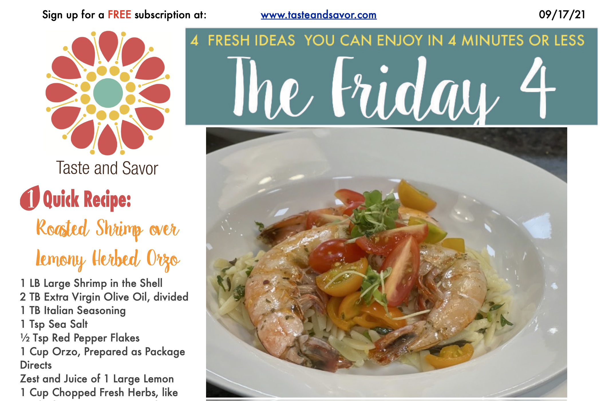 Roasted Shrimp over Lemony Herbed Orzo