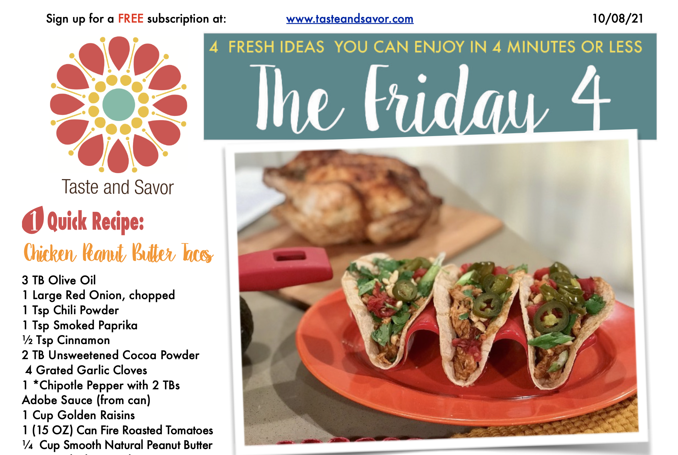 Friday Four – Sweet and Spicy Chicken Peanut Butter Tacos – 100821