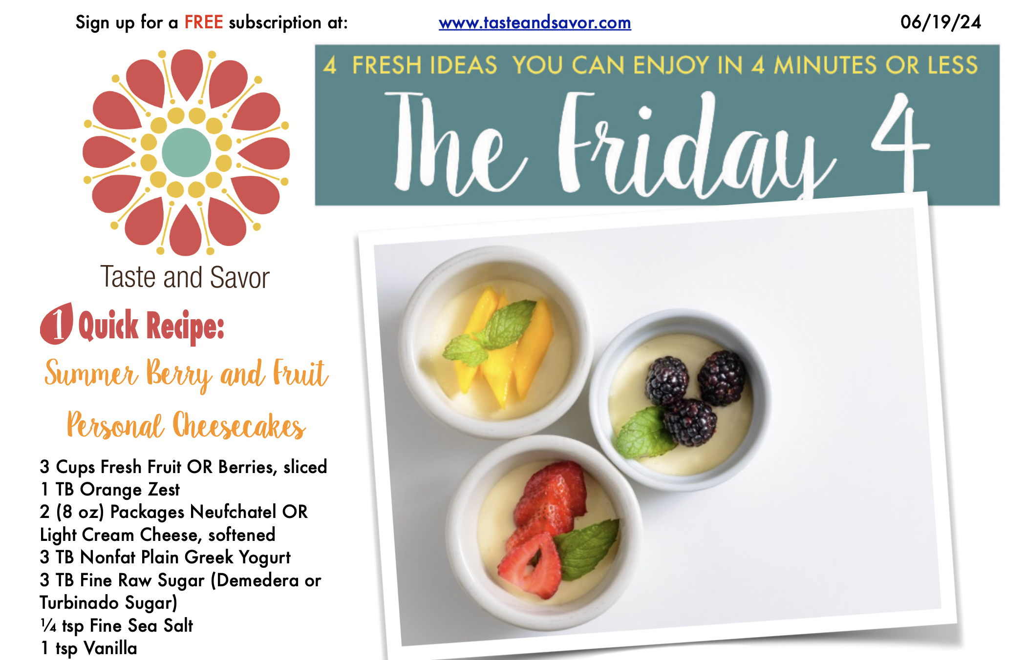 Friday Four – Summer Berry and Fruit Personal Cheesecakes – 062124