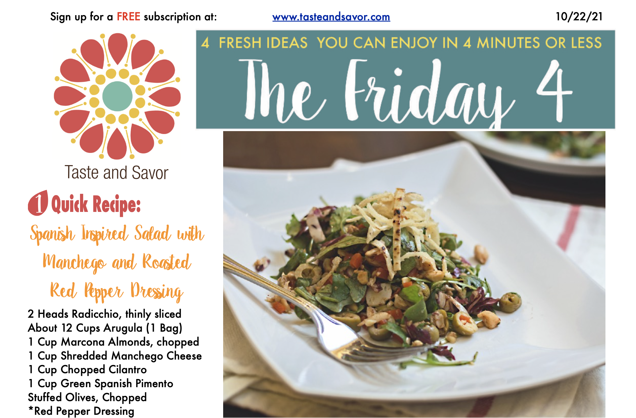 Spanish Inspired Salad with Manchego and Roasted Red Pepper Dressing