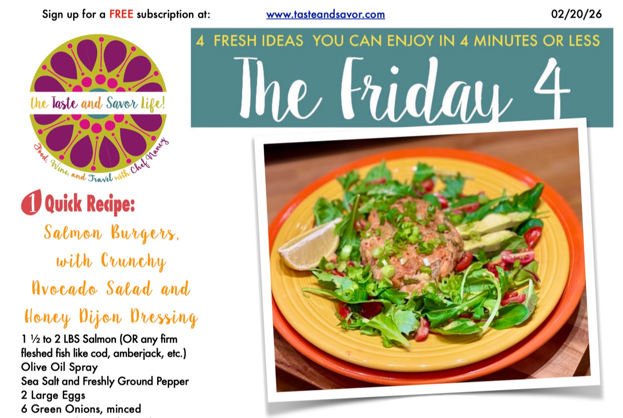 Salmon Burgers, with Crunchy Avocado Salad and Honey Dijon Dressing